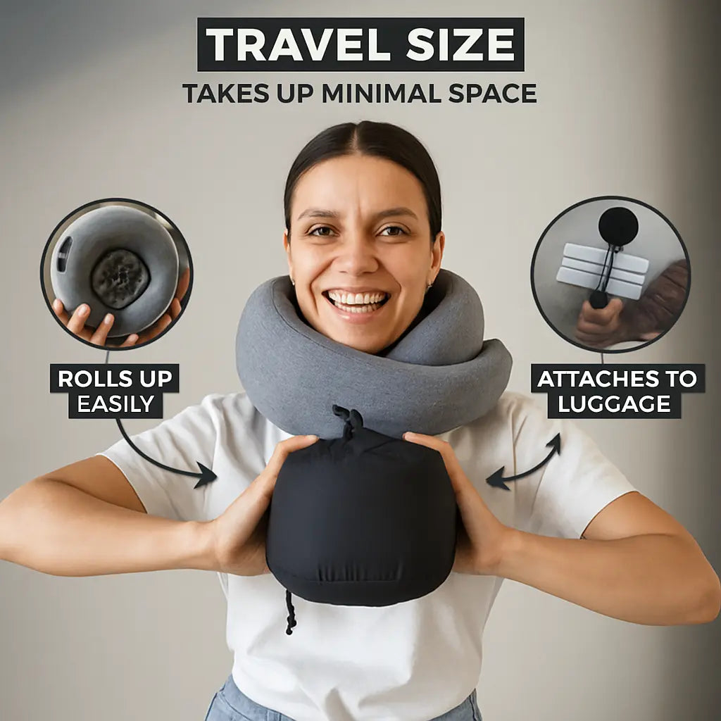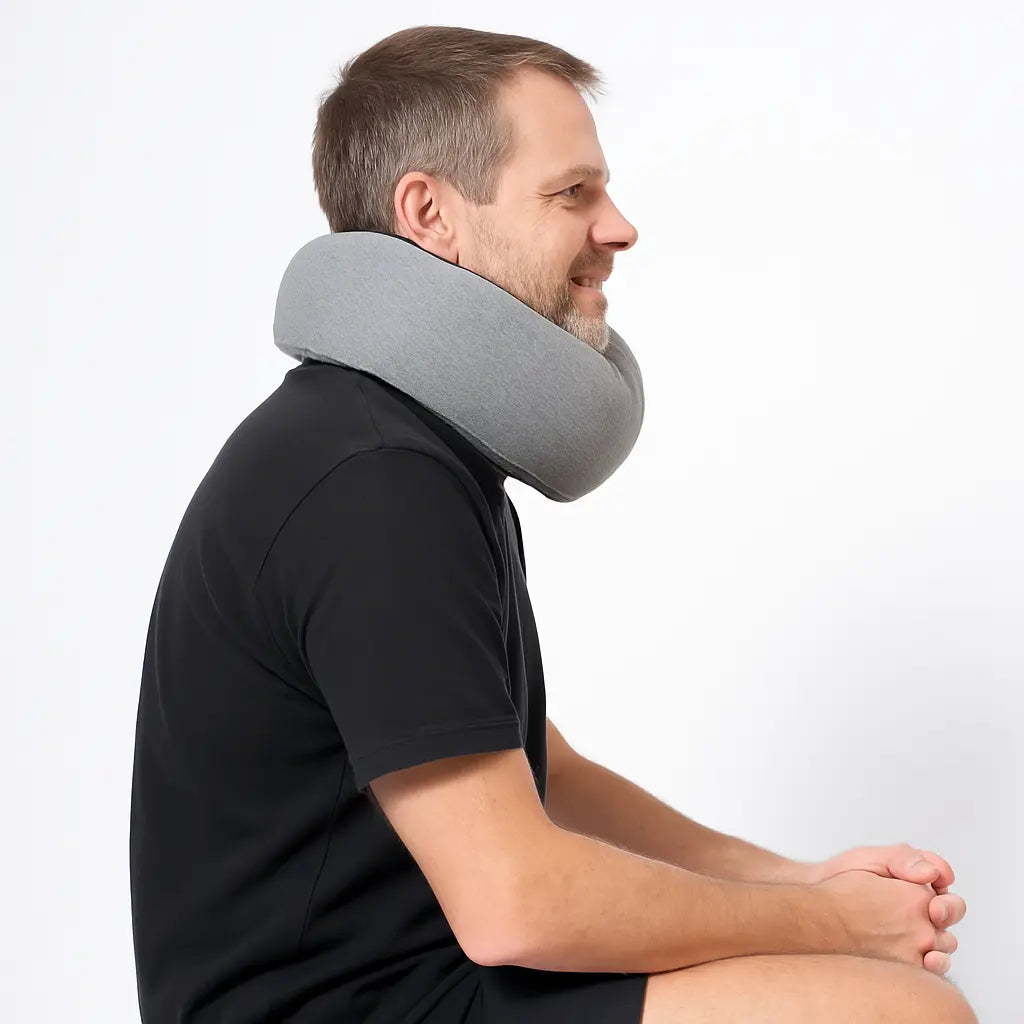 Unlike traditional U-shaped pillows that often leave the front unsupported, AeroRest provides 360° neck and chin support. This prevents head bobbing, reduces snoring, and keeps your head upright so you can actually rest comfortably while traveling.